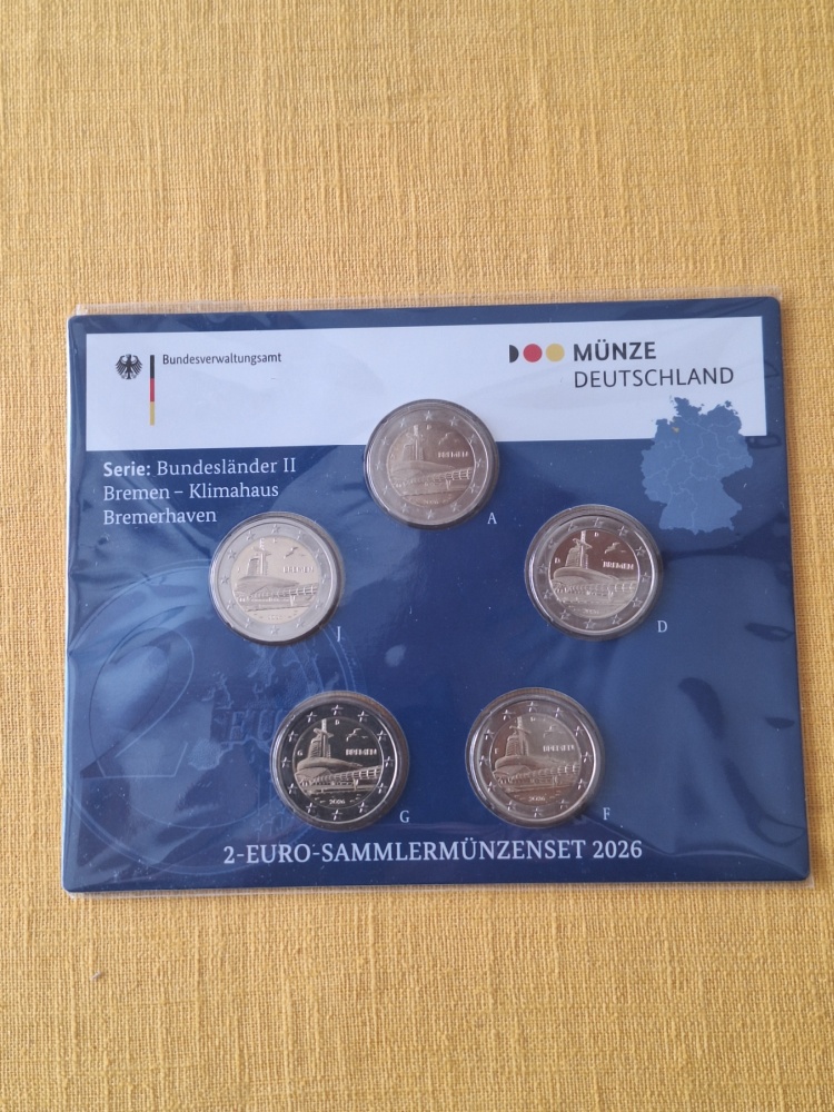 5x 2 Euro SM Deutschland 2026 st Bremen im Blister |
