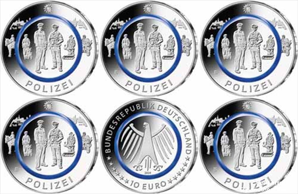 Die 10 Euro Münze 2024 - "POLIZEI" unc lose mit blauem Polymerring - alle 5 Prägestätten - lieferbar |