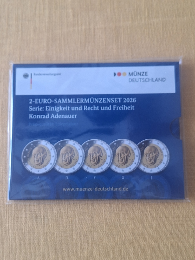 Thema: Konrad Adenauer - alle 5 Prägestätten im Blister PP - lieferbar ab Ende Jänner |
