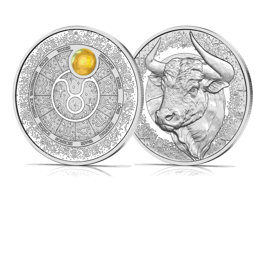 Thema: Serie: STERNENBILDER - Die 2. Münze der 12-teiligen Serie - Der STIER - 20 Euro Silbermünze mit Schmuckstein "BERNSTEIN" in PP in der Originalverpackung - lieferbar ab 25.3.2026