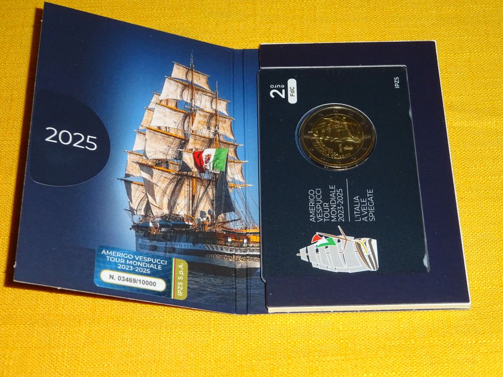 Produktbezeichnung:     2 Euro SM Italien 2025 Weltreise Schulschiff VESPUCCI Coincard